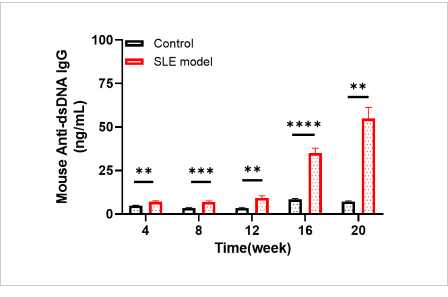 Serum anti-dsDNA IgG levels exhibited a time-dependent elevation with prolonged induction duration.